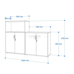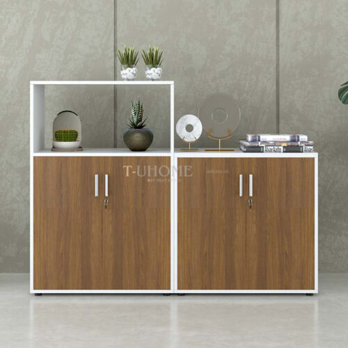 Thiết kế tổng thể của tủ gồm hai khoang chính: một khoang mở bên trái dùng để trưng bày chậu cây, vật dụng trang trí, sách hoặc hồ sơ cần lấy nhanh; và một khoang tủ kín bên phải dùng để lưu trữ tài liệu, biểu mẫu hoặc đồ cá nhân. Nhờ sự kết hợp mở – kín này, TL12-HC16 giúp không gian làm việc vừa gọn gàng vừa tạo điểm nhấn thẩm mỹ tinh tế.