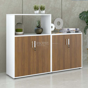 Thiết kế tổng thể của tủ gồm hai khoang chính: một khoang mở bên trái dùng để trưng bày chậu cây, vật dụng trang trí, sách hoặc hồ sơ cần lấy nhanh; và một khoang tủ kín bên phải dùng để lưu trữ tài liệu, biểu mẫu hoặc đồ cá nhân. Nhờ sự kết hợp mở – kín này, TL12-HC16 giúp không gian làm việc vừa gọn gàng vừa tạo điểm nhấn thẩm mỹ tinh tế.