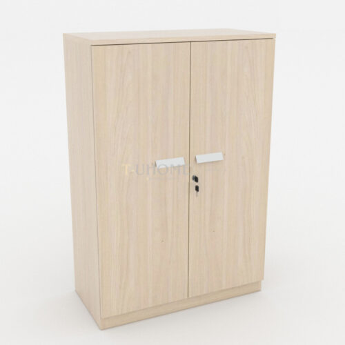 Phần dưới của tủ gồm ba khoang tủ cánh mở liền mạch, mang lại khả năng lưu trữ lớn cho tài liệu, hồ sơ quan trọng hoặc những vật dụng cần sự kín đáo. Cánh tủ sử dụng tay nắm kim loại đơn giản nhưng chắc chắn, một khoang được trang bị khóa để đảm bảo tính bảo mật khi cần thiết.