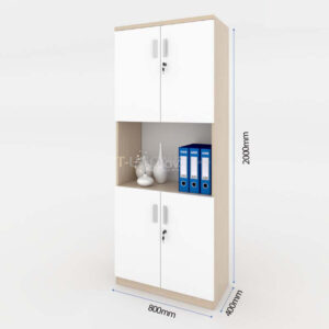 Phần trên của tủ được thiết kế với hai cánh mở có khóa, hỗ trợ lưu trữ những tài liệu quan trọng cần tính bảo mật cao. Bên trong khoang tủ rộng rãi, người dùng có thể sắp xếp hồ sơ, sách vở hoặc đồ dùng cá nhân một cách ngăn nắp.
